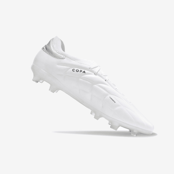 Der adidas Copa Pure 2+ Elite FG vereint minimalistisches Design mit modernster adidas-Technologie. Diese schnürungslose Version in strahlendem Weiß mit silbernen Akzenten steht für Stil, Präzision und Komfort – perfekt für Spieler, die auf Naturrasen dominieren wollen.