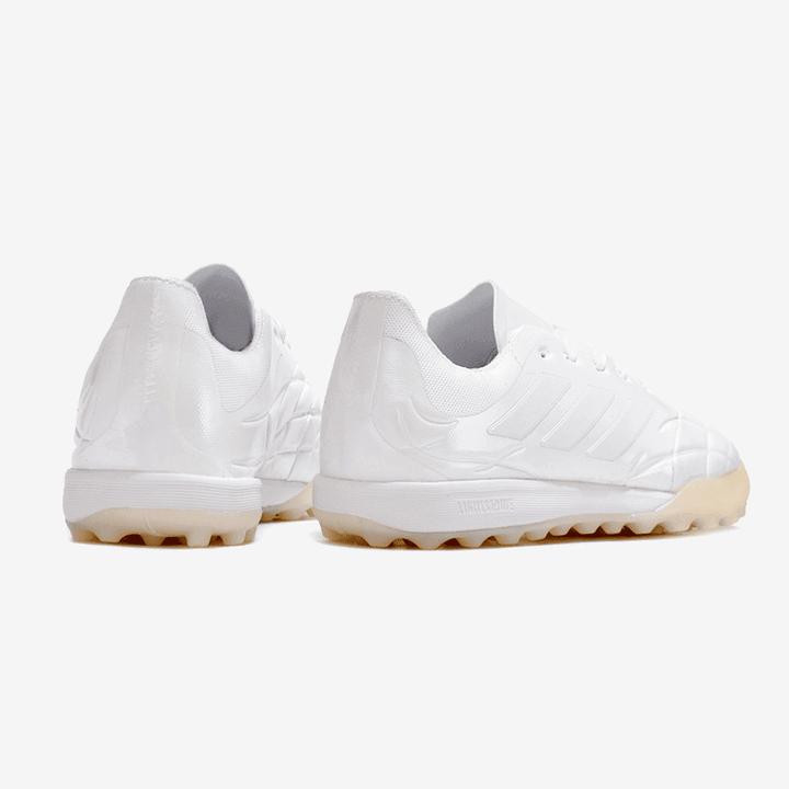 Der adidas Copa Pure 2 League TF in Weiß mit heller Gum-Außensohle vereint traditionelles Copa-Design mit moderner adidas-Technologie. Für Kunstrasenplätze konzipiert, bietet er weiches Ballgefühl, hohen Komfort und zuverlässige Stabilität bei jedem Spiel.