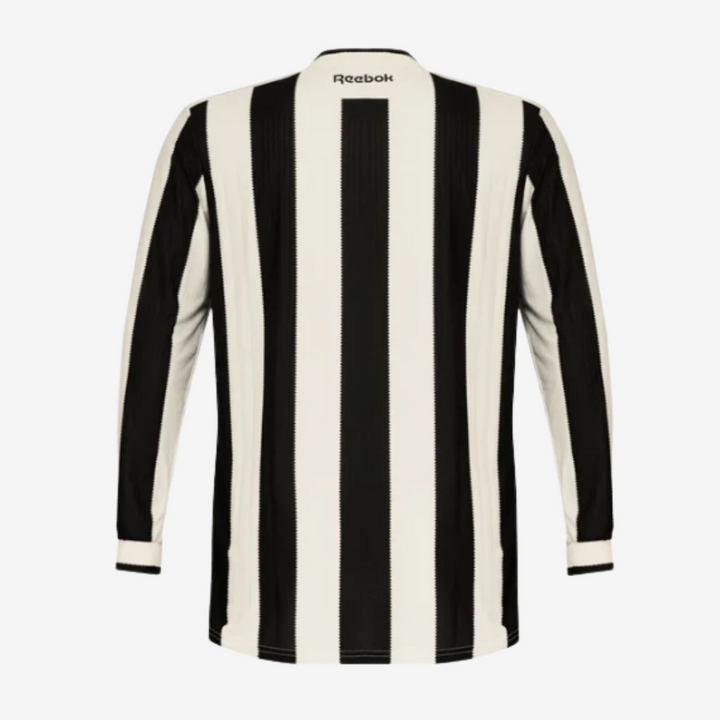 A Camisa Manga Longa Botafogo 2024/25 I resgata a essência do Glorioso com imponência e respeito à história. Com as clássicas faixas verticais em preto e branco, agora em textura exclusiva, o manto ganha ainda mais presença com o escudo bordado em versão monocromática e o patch dourado na barra inferior, em homenagem à estrela solitária.