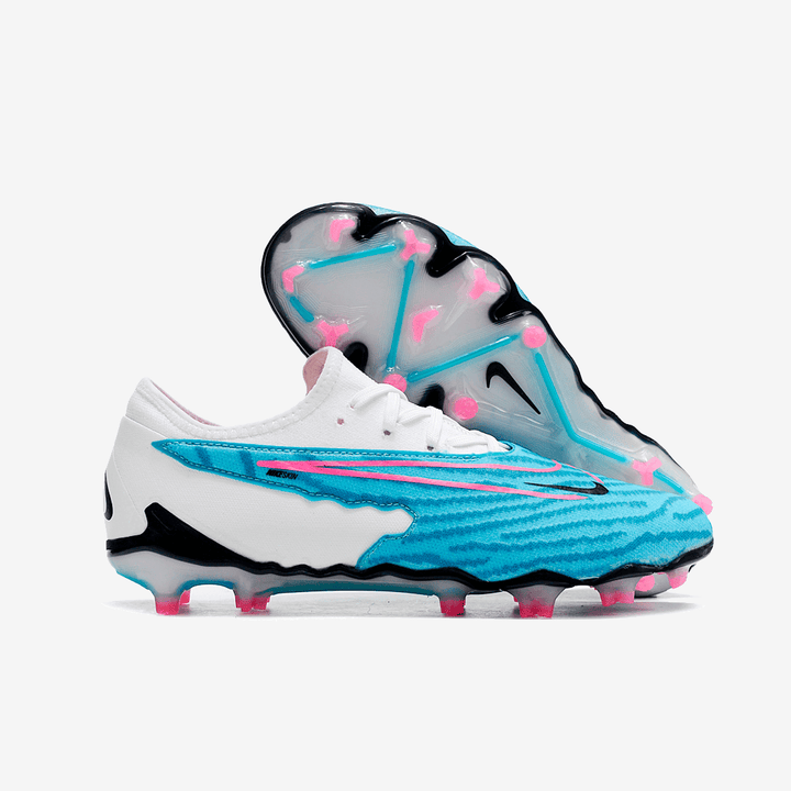 Der Nike Phantom GX Academy FG wurde für Spieler entwickelt, die Technik und Kreativität auf den Platz bringen. Mit seinem frischen Weiß-Blau-Design mit rosa Akzenten sticht er optisch hervor und liefert gleichzeitig zuverlässige Performance auf Naturrasenplätzen.