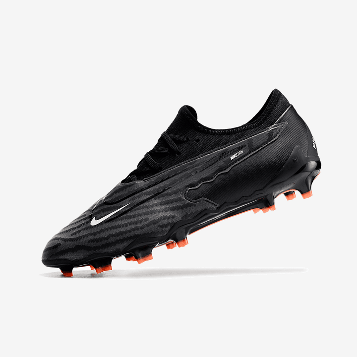 Der Nike Phantom GX Academy FG wurde für Spieler entwickelt, die mit Technik und Übersicht dominieren. Diese Version im klassischen Schwarz mit weißen und orangefarbenen Details verbindet elegantes Design mit verlässlicher Performance auf Naturrasenplätzen.