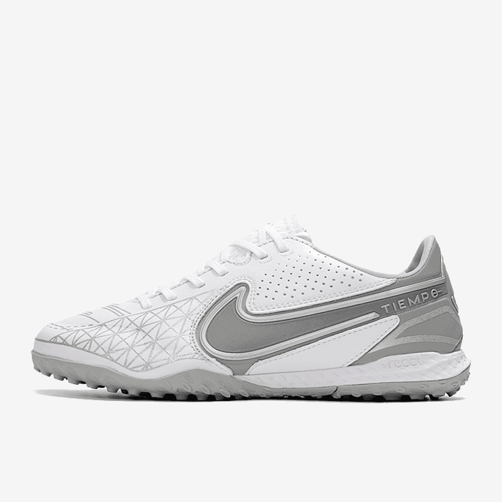 Der Nike React Tiempo Legend 9 Pro TF wurde für Spieler entworfen, die auf Kunstrasen- und Society-Plätzen mit Kontrolle und Dynamik überzeugen wollen. Mit elegantem Design in Weiß und Grau kombiniert er Ballkontrolle, Komfort und zuverlässige Traktion.