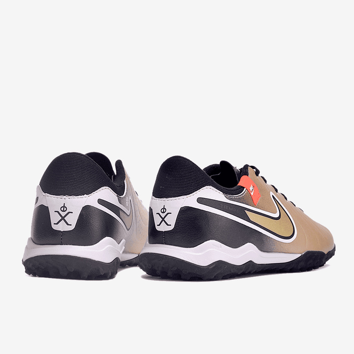 Der Nike Tiempo Legend 10 Academy TF verbindet das klassische Tiempo-Erbe mit moderner Technologie für Spiele auf Kunstrasen- und Hartplätzen. Im edlen Gold-Schwarz-Silber-Design mit orangefarbenen Details bietet er Komfort, Stabilität und präzise Ballkontrolle.